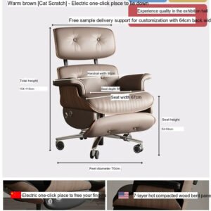 Crafted with high-density rebound sponge, the chair offers exceptional support to your back and posture, enhancing comfort during prolonged use. The imported Napa leather upholstery adds a touch of luxury while ensuring durability. Its carefully designed construction makes it an ideal choice for anyone seeking both style and functionality.