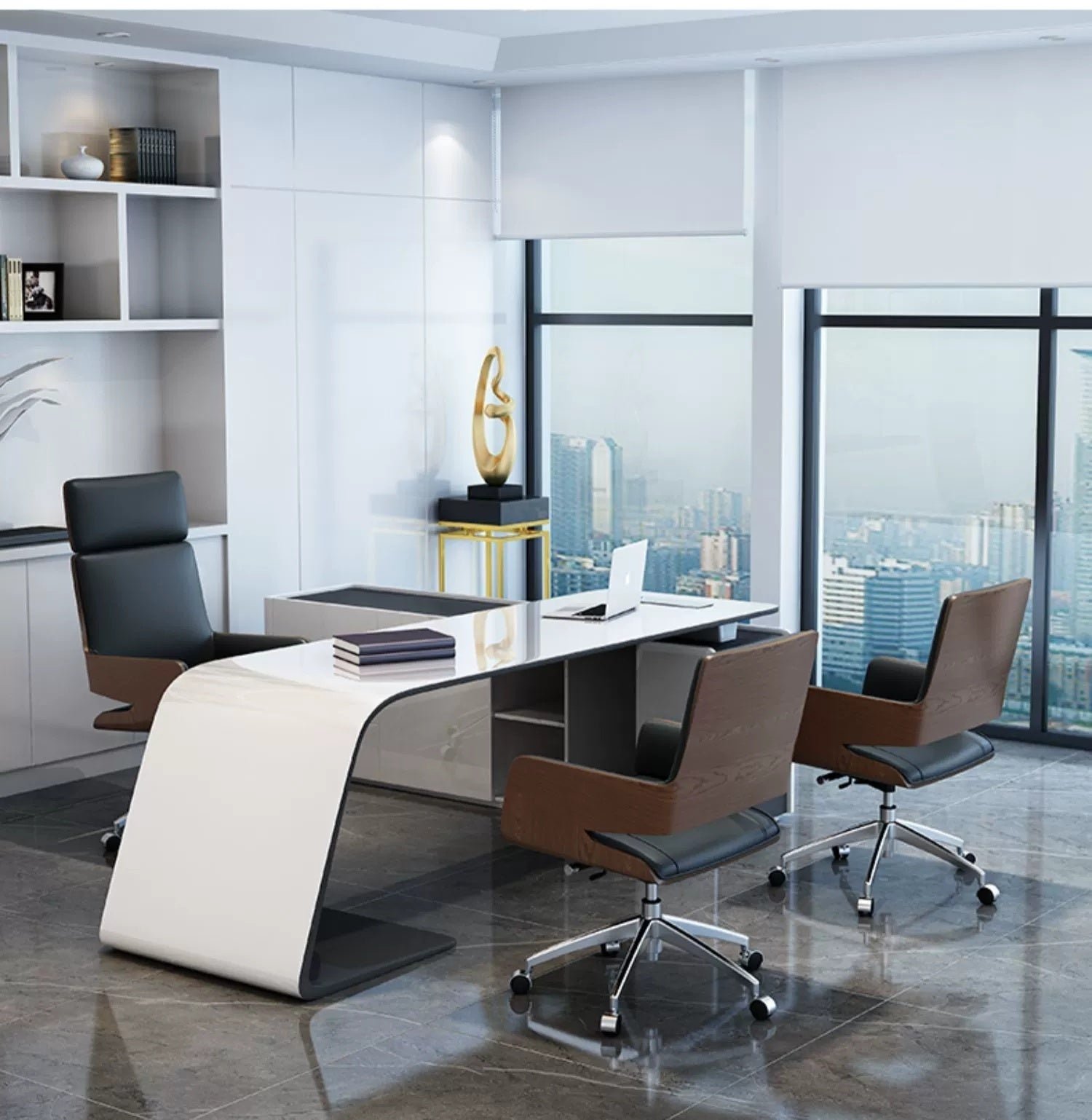 This luxurious finish not only contributes to the chair’s contemporary elegance but also ensures ease of maintenance, keeping your office space looking pristine and stylish for years to come.